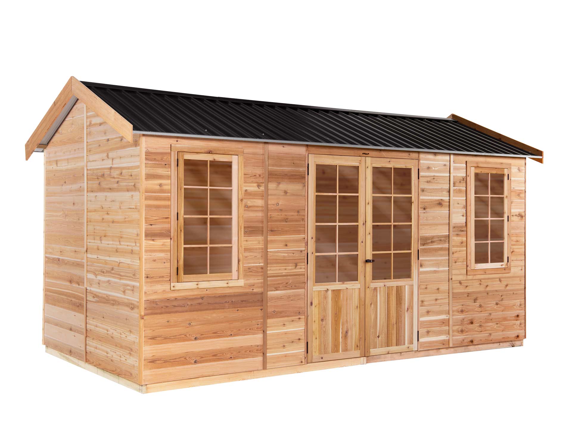 Our CEDAR STUDIO range is manufactured in Australia, and is constructed using 42 x 35mm termite resistant pine framing and 18mm thick Canadian Western Red Cedar VJ cladding with a Colorbond steel roof. The ALPINE 16×8 is supplied in an easy to assemble kit with pre-made panels. The panels come in raw timber (not stained or painted) allowing you to select the finish of your choice.