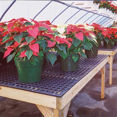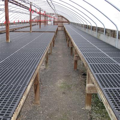 These easy-to-use interlocking plastic grids are a great solution for creating versatile plastic benchtops or a durable greenhouse flooring. They provide an excellent growing surface for your potted plants, nursery flats, or seedling trays at a fraction of the cost of metal bench materials. These easily interlockable plastic panels are a great way to finish your custom built bench frames!