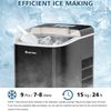 Our portable ice make is a perfect addition to your kitchen. High-efficiency compressor and R600a refrigerant ensure fast ice making speed. It can produce 9 bullet-shaped ice cubes every 7-8 minutes and make 15kg ice per day. You can put those bullet-shaped ice cubes in iced food, smoothies or cold drinks. Those ice cubes can also be used for first aid. In addition, with intuitive control panel and LCD display, you can choose different ice sizes (small or large), see the ice making time and status. Besides, it’s equipped with different indicator icons to show when the ice is full and when you need to add water. Its self-cleaning function also brings much convenience. Moreover, with food-grade ABS and PP material, the ice maker is non-toxic,odorless and harmless to your health. SAA certification ensures more security. You can use our ice maker in kitchen, office, restaurant, bar, cafe, etc. Furthermore, visible window, ice scoop and removable ice bucket help you to use and clean it without effort. NOTE:Before using the Ice maker for the first time, please wait 24 hours after positioning it, and keep the transparent lid open for at least 24 hours