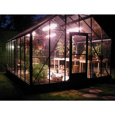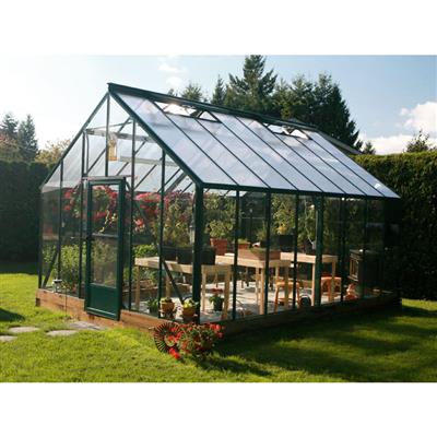 This beautiful Cottage Series Greenhouse features a tall 35° roof slope, a sturdy painted aluminum frame, and comes standard with beautiful clear 3mm tempered lapped glass covering on the roof and sidewalls. One piece 6mm glass is available at additional cost, just call and speak with a representative to confirm. The steeper roof slope easily sheds snow and maximizes interior height for tall greenhouse plants. Buy Greenhouse Kits online.