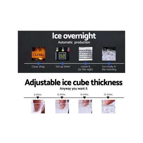 Introducing our Commercial Ice Maker, an essential asset for your business. With the ability to produce 45 ice cubes in just 12-15 minutes, and a choice of 4 levels of ice cube thickness, it meets the demands of any establishment. The dual safety protection ensures uninterrupted service, automatically halting production upon water shortage or when the ice bin is full, while the self-cleaning system maintains hygiene standards. Coupled with Freon-free refrigerant and enhanced heat dissipation for energy savings, this compact unit seamlessly integrates into any commercial kitchen or bar setting, providing reliable ice supply for your guests.
