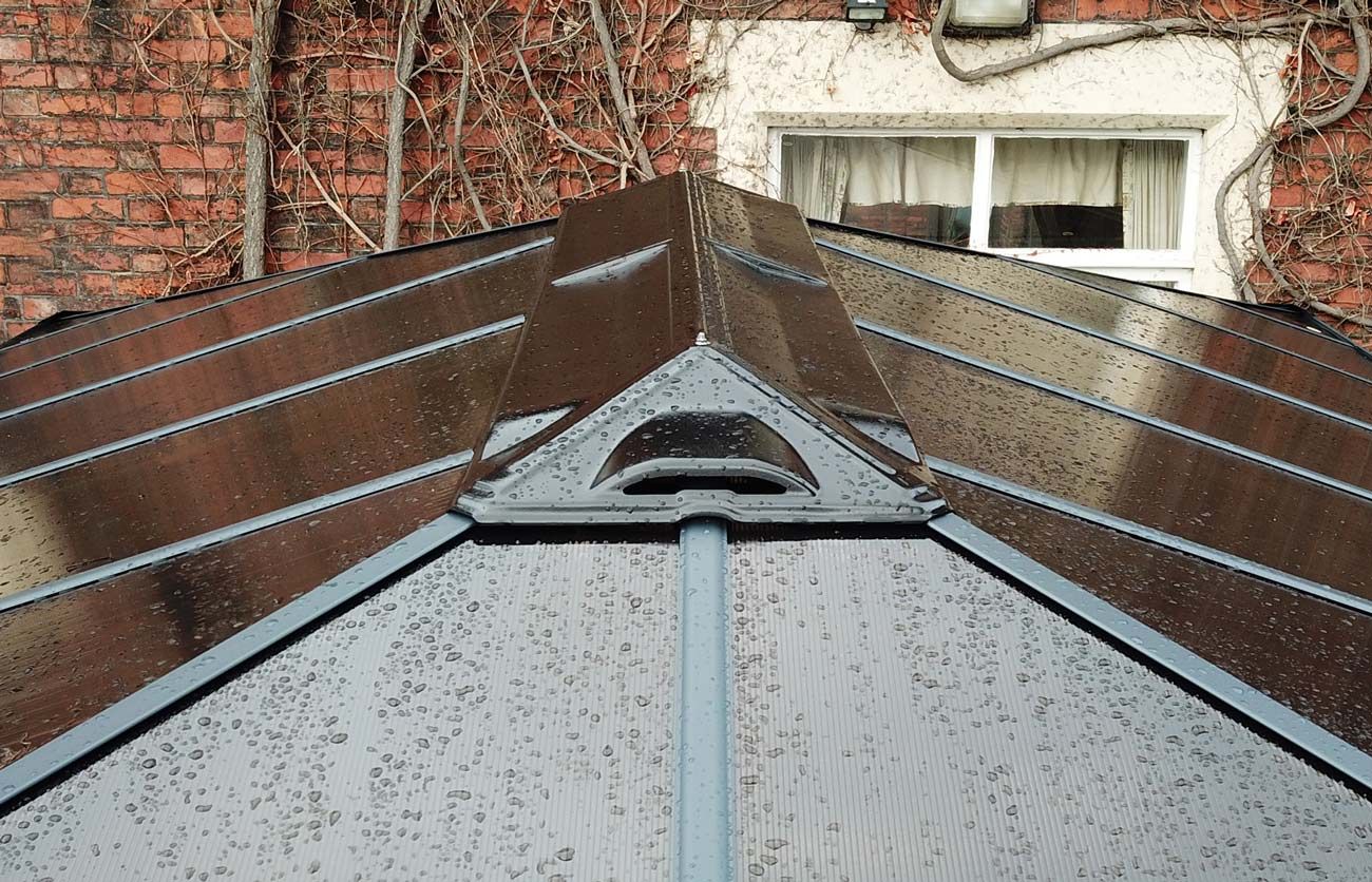 • Virtually unbreakable 6 mm twin-wall polycarbonate roof panels are high impact and shatter resistant • Treated unique GREY glazing – transmits natural sunlight on overcast cloudy days and provides plenty of shade on the lazy hazy days of summer • Withstand severe weather conditions – no need to remove panels during winter season • Maintain their integrity, provide complete UV blockage, and are 100% UV protected; they do not discolor, fracture or become brittle over time • Ready to assemble pre-cut panels