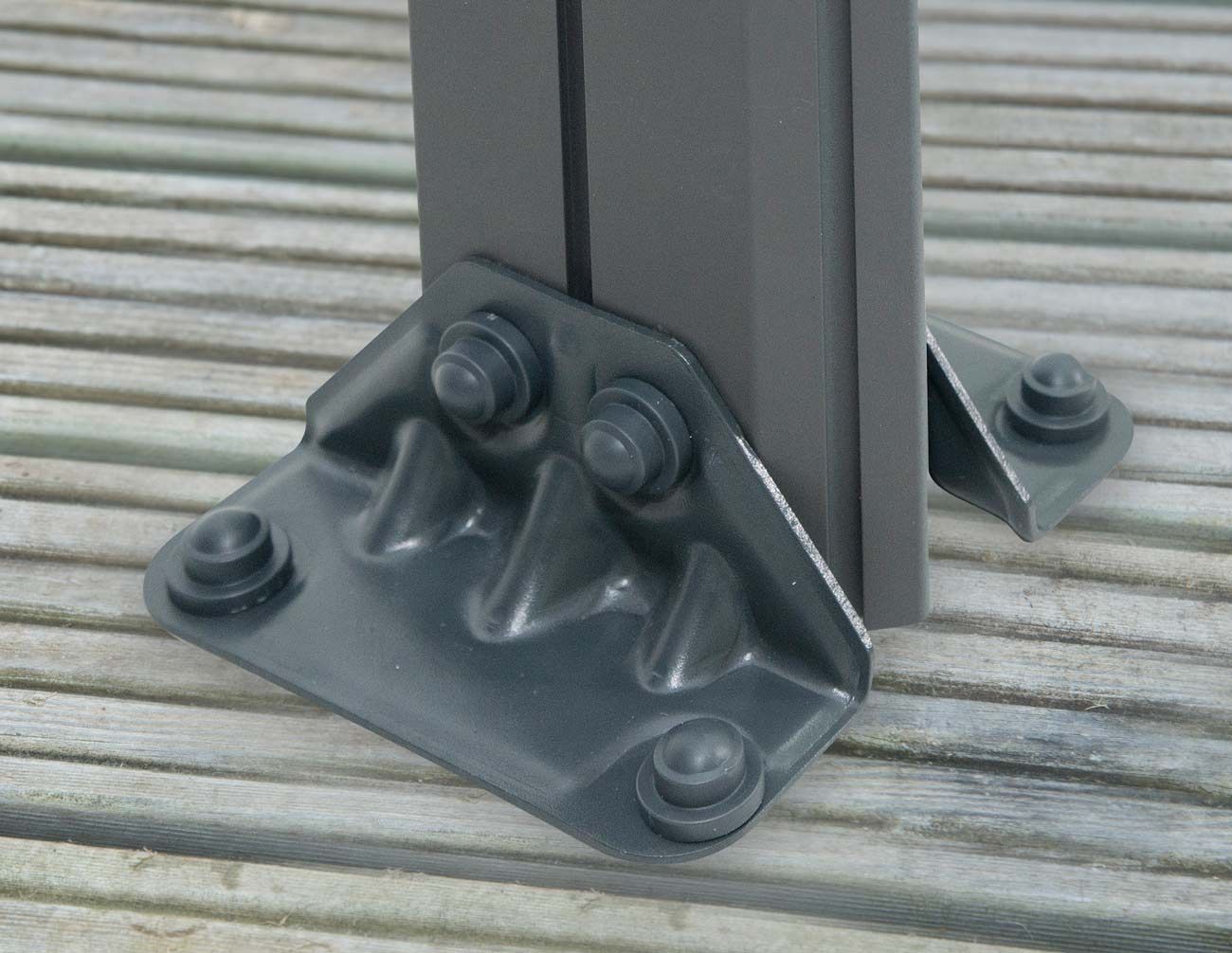 • Anchoring and foot-pads included – structure can be relocated and anchored to any surface • Sturdy aluminum posts