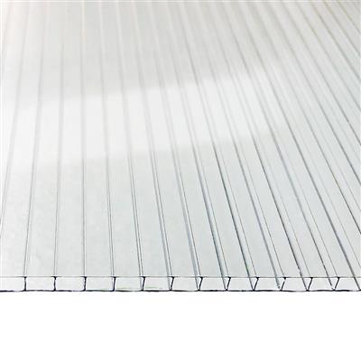 Our 10mm twinwall polycarbonate offers higher impact resistance and heat retention over thinner panels making it the perfect solution for a variety of greenhouse and architectural applications. Panel offers 79% light transmission and includes anti-condensate coating to prevent dripping.