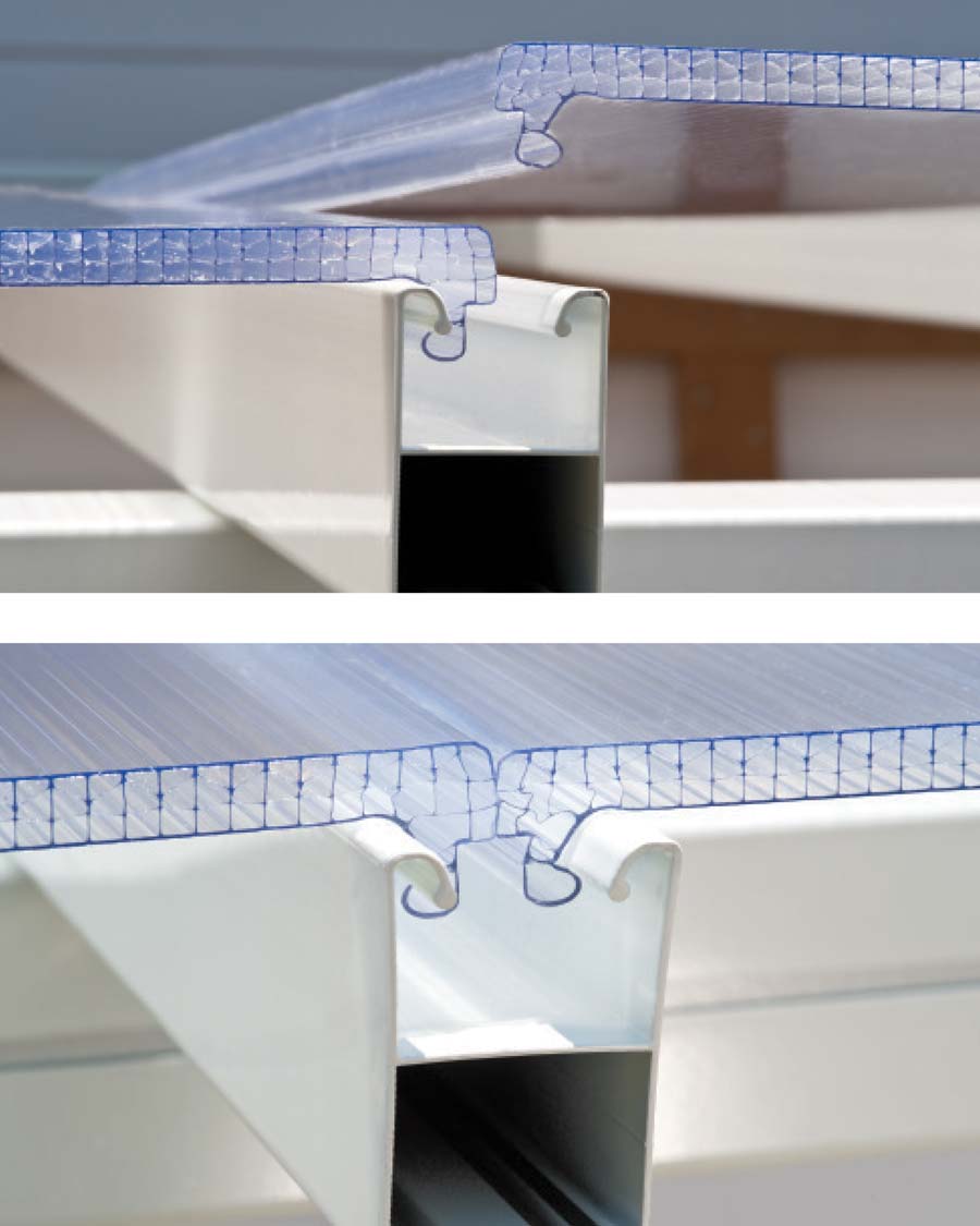 • Virtually unbreakable white 8 mm multiwall polycarbonate roof panels offer high impact, shatter resistance and protection from inclement weather