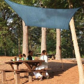 Sun Shade Sails block up to 90% of harmful UVA and UVB rays with its high density polyethylene fabric. The UV stabilized shade sail is durable, yet breathable, allowing rain to pass through without collecting or pooling on top of the sail. Perfect for decks, patios, pool and play areas, picnic areas, parks, gazebos and more.