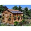 The Sunshed has 8 aluminum-frame, tempered glass windows along the side, and 6 Lexan skylights on the roof, which allow 90% of the light through while blocking harmful UV rays, keeping plants, equipment, and people protected. The 16″ wide L-shaped Red Cedar wall workbench is great for getting jobs done, for relaxing and eating at, or, if desired, can even serve as a shelving unit for plants. The Sunshed also comes with 5 flower boxes and a 31″ wide Dutch door, which makes for easy and comfortable access.