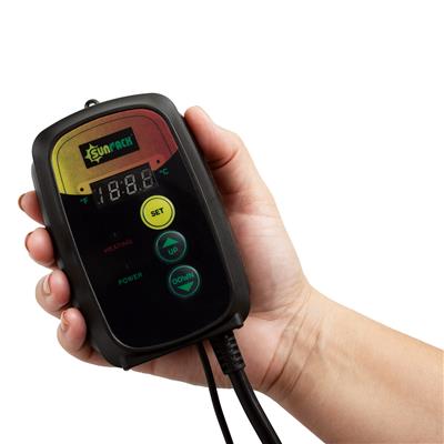 This Thermostat for Seedling Mat allows growers to select and maintain optimal temperatures when germinating seeds or rooting cuttings for fastest growth. In addition to its horticultural uses, it is also a great tool for homebrewing (maintenance of optimal fermentation temperature) and environmental control in reptile terrariums. This UL-listed digital thermostat provides constant, uniform temperature control for germination, propagation and fermentation environments between 68°F-108°F (20°C-42°C). Will control up to 1000 watts of propagating mats. Works with the Seedling Propagation Mat (SUNPAD Lite Heat Mat) or most other 120V mats.