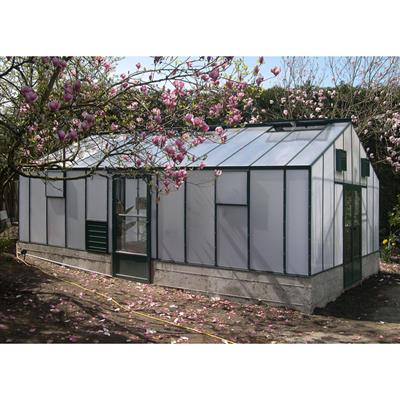 The Traditional Straight Eave Greenhouse is specifically engineered for quality and strength and designed to withstand all weather conditions. White heavy duty aluminum structure features 6mm twin-wall polycarbonate covering, extra high 5′ 6″ sidewalls for side shelving, roof bars designed to carry large hanging baskets, double wide greenhouse individual roof vents for proper ventilation, and a premium storm door with adjustable screened sliding window. This greenhouse offers the widest selection of sizes than any other kit on the market. The Traditional Straight Eave Greenhouse lengths are extendable in 2′ increments to allow for future expansion. The included instructions and step-by-step assembly video make these greenhouses easy to assemble.