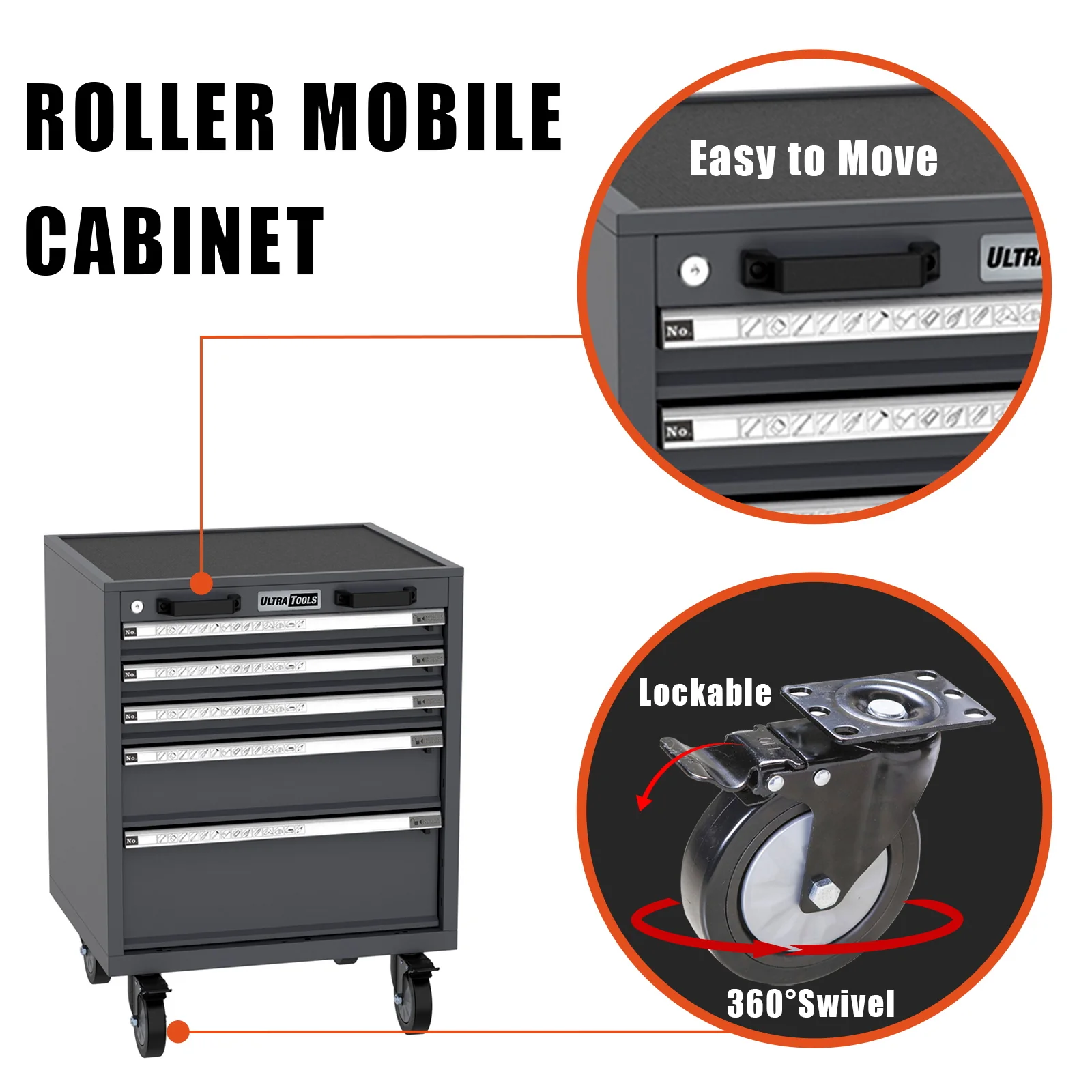 - 5-drawer curler cellular cupboard for simple device entry and mobility