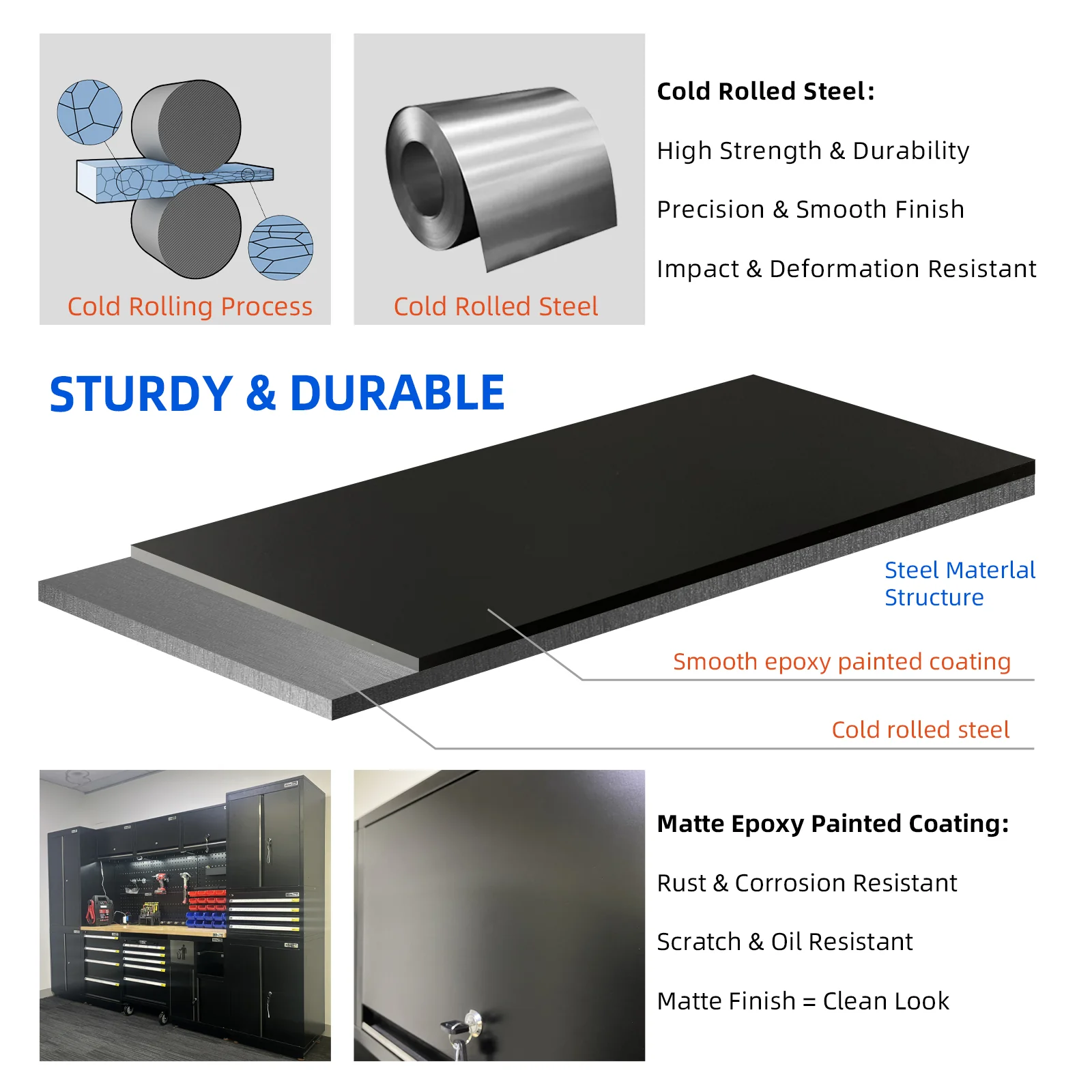 - Constructed from cold-rolled metal