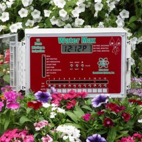 The Water Max offers some exciting features in a time-based irrigation and misting control system. Twelve individual stations may be individually set for operation times, watering days, and repeat functions. The propagation mist adjustments include separate start and stop times, as well as on and off times for complete mist cycle operations. Twelve independent stations, this unit is not expandable